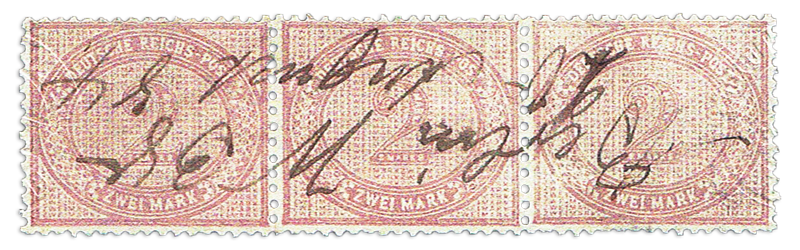 Für die Innendienstmarke MiNr. 37 gab es seinerzeit konkrete Vorgaben: Bis 17. November 1884 musste sie handschriftlich, ab 18. November dann mittels Poststempel entwertet werden. Unsere Federzugentwertung vom 20. August stellt damit den Normalfall dar, und wir haben regelkonform gehandelt. Eine entsprechende Einzelmarke der billigsten Sorte ist im MICHEL-Deutschland-Spezial mit 50 Euro gelistet, ein Dreierstreifen mit 200 Euro.