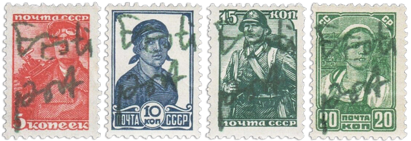 In Estland gab es im Juli 1941 in Nüggen eine Freimarkenausgabe mit 5 Werten in zwei Aufschriftfarben. Handschriftlich wurde mit roter oder grüner Tinte die Aufschrift „Eesti/Post“ auf sowjetischen Urmarken angebracht. Die fünf Urmarken sind bei MICHEL mit 20,– Euro bewertet, die fünf Werte mit Aufdruck zwischen 14.000,– und 42.000,– Euro je nach Erhaltung.