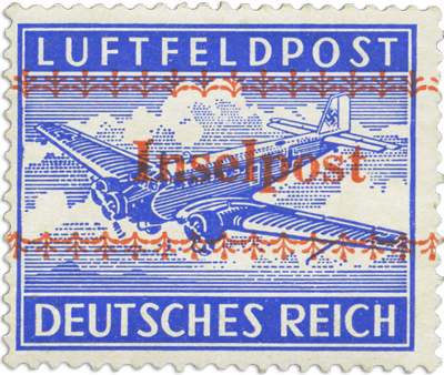 Bei den deutschen Feldpostmarken für die Insel Kreta 1944 gibt es einen orange- bis zinnoberroten Aufdruck auf den sehr häufigen Luftfeldpost-Zulassungsmarken MiNr. 1 A und 1 B. Auch bei diesen Ausgaben findet sich im MICHEL der Hinweis auf Stempel- und Aufdruckfälschungen. Hier sind die Aufdrucke im Buchdruck ausgeführt. Die meisten Aufdruckfälschungen sind im Offsetdruck hergestellt, mittels Gummihandstempel oder Computerdrucker. Nachfolgend abgebildet sind links eine echte Marke mit echtem Aufdruck und rechts die mit 4500,– Katalogwert notierte 7 B K mit Aufdruckfälschung.