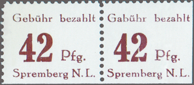 Abbildung 3: Deutsche Lokalausgabe Spremberg MiNr. 13 mit auffälligen Brüchen in der „2“ der Wertangabe
