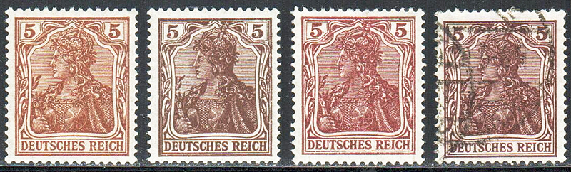 Bei den Germania-Freimarken MiNr. 140–153, die ab 1920 ausgegeben wurden, wurde eine weitere Farbe in den Katalog aufgenommen. Dies erfolgte bereits mit dem Deutschland Spezial 2021. Bei den Marken mit dem Nennwert 5 Pfennig sind nun Exemplare in der Farbe „(dunkel-)violettbraun“ als MiNr. 140 d katalogisiert. Die neu gelistete Farbe zeigt einen deutlichen Anteil Violett im Braun. Die Farbbezeichnung wurde anhand des MICHEL-Farbenführers in der 38. Auflage bestimmt. Früher wurde die Farbe als MiNr. 140 c geprüft. Marken in der d-Farbe sind nicht häufig. Obenstehendes Bild zeigt die aktuell katalogisierten Farben der MiNr. 140 a bis 140 d.