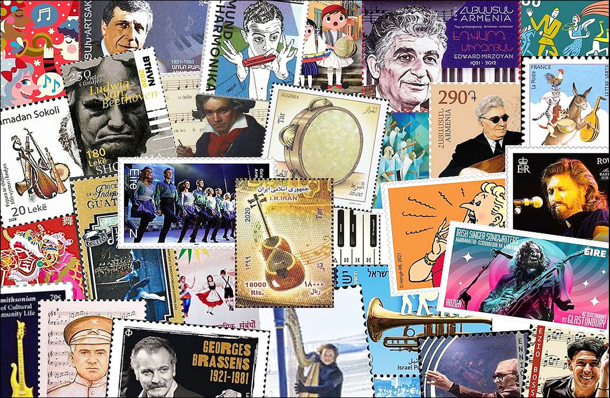 Nach dem philatelistischen Beethoven-Festival im Vorjahr lag der Fokus der Postverwaltungen 2021 eindeutig auf der Würdigung von Persönlichkeiten und musikalischen Traditionen des jeweils eigenen Landes.